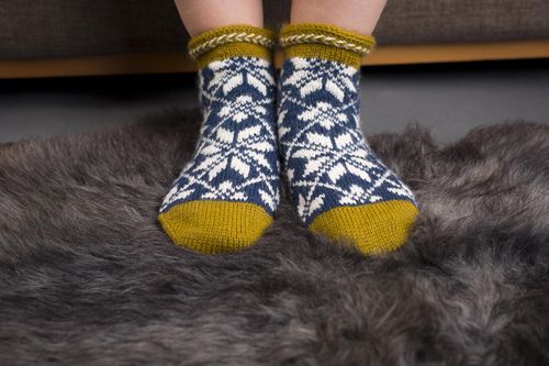 There are 12 different pullovers and cardigans to choose from, including simple-to-knit styles such as the Evendoon pullover and cardigan alongside the enjoyable cable challenges posed by Wryit or Tree Tram Tro. Yet Kate’s hallmark is perhaps her work with colour, and this collection abounds with bold designs of many hues, including yoke sweaters, a cosy hoody, mitts, cowl, hats and slippers, and the graphic Sterrie blanket with its simple, contemporary feel.