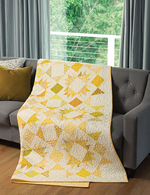 Begin with your favourite colour, then quilt your way through a rainbow of hues. And because it takes both sunshine and rain to make a rainbow, there's a rainy-day quilt of scrappy black prints too. If choosing a favourite is too difficult, use all the colours to create an ombré rainbow quilt to showcase the range of colours you love. From beginning to end, you'll be dazzled with these radiant quilts!