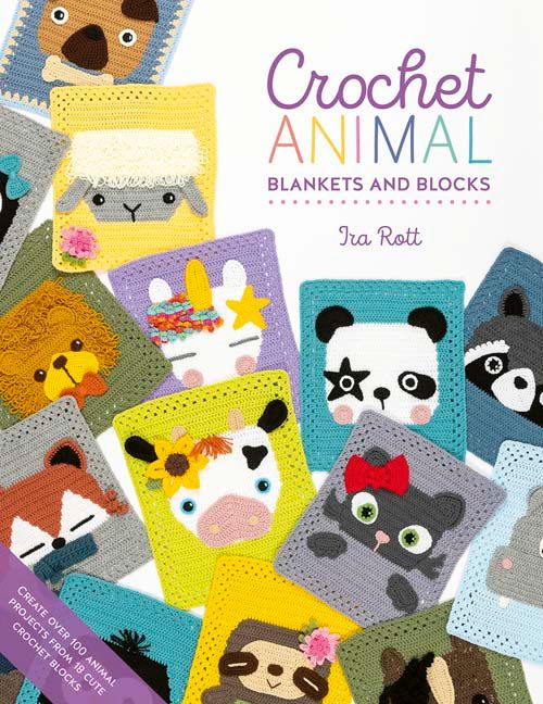Crochet blankets, pillows and more with this colourful collection of crochet animal blocks.