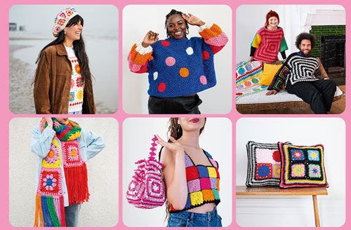 With Hip to Be Square learn how to transform five simple granny squares into 20 bold and bright designs featuring size-inclusive garments, stylish accessories and beautiful homewares.