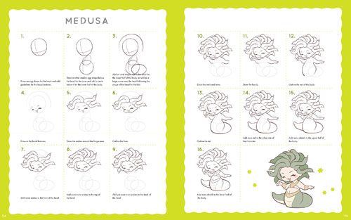 Along with the step-by-step instructions, there are inspiration pages with fun accessories and clothing, facial expressions and different poses as well as a digital workshop to guide you on how to make quick drawings on your phone or tablet.