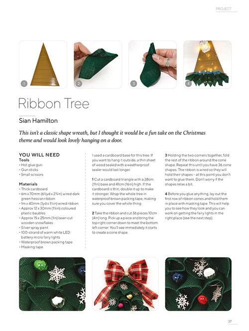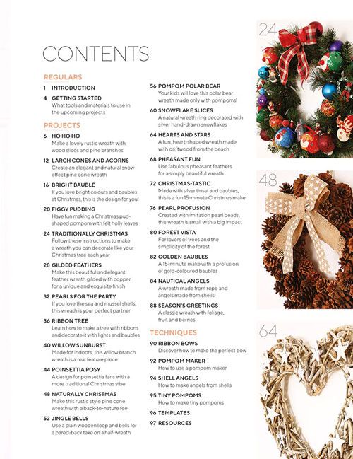 Wreaths combines both simple and modern styles with more traditional Christmas designs, featuring projects to suit everyone's tastes. The projects use a wide range of materials, from a Christmas pudding made with wool and felt, through gorgeous white features adorned with copper leaf to a ribbon Christmas tree.