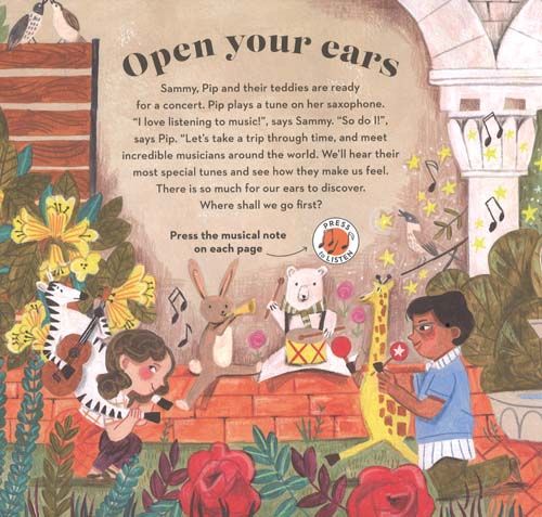 From 1600s England, where you can hear the harpsichord play Greensleeves, to 18th Century Munich, where you can hear Mozart's piano sonata, to a classical Indian raga in 1700s Udaipur, to New York in the 1940s, where readers can press Charlie Parker's saxophone to hear bebop Jazz, this book will teach children about cultural history, famous musicians and musical genres all while wanting to press the buttons and hear the music again and again.