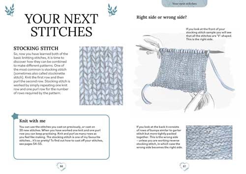 Perfect for complete beginners, the author clearly explains everything you need to know about knitting: how to read a ball band, how to get tension correct, how to choose needles and yarns, how to cast on and how to read abbreviations and knitting patterns. It is structured as a simple three-step course that will help you progress from bronze to gold as your skills and confidence grow.