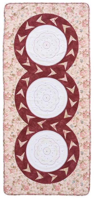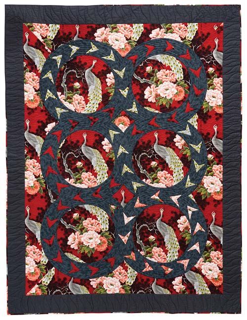 Stunning movement in a quilt; a chain of arrows directs the viewer’s eyes to follow and explore the quilt through the middle of the paths! This original design is suitable for various fabrics and highlights exquisite circular and hexagonal patterns.