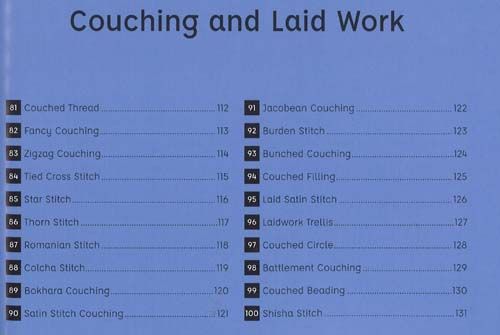 Main sections include: Lines and outlines, Bands and borders, Isolated stitches and motifs, Filling stitches, Couching and laid work.