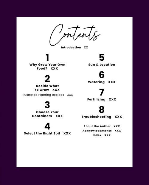 Plus, find a dozen fully illustrated planting plans for themed container food gardens, including a Smoothie Greens Garden, a Spring Stir-Fry Garden, a Spaghetti Sauce Garden, a Salad Greens Garden, and many others.