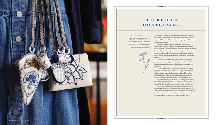 Jewellery roll embellished with pretty, floral motifs and an ogee shape, worked using a stunning felt inlay technique - Deerfied Chatelaine