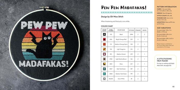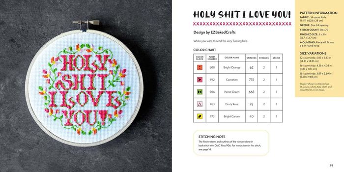 With 25+ patterns from the crafting world’s most bad-ass cross-stitch designers, this book has everything from a modern take on the traditional sampler to retro comic book designs, all with snarky to downright foul-mouthed phrases. It is definitely not your grandmother’s cross stitch! No experience is required. In addition to simple instructions and clear, easy-to-follow patterns, this book includes a guide to basic lessons in cross-stitch techniques, so anyone can start swearing and stabbing right away.