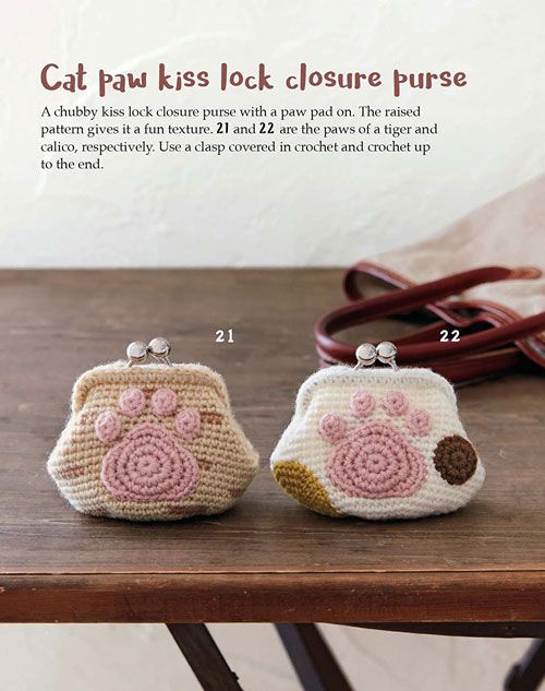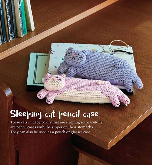 Instructions for crocheting these feline friends are given in the Japanese-style using visual charts and symbols that are easy to follow and clearly explained in a special section. The steps and diagrams walk you through the process of creating sweet little kitty items such as: