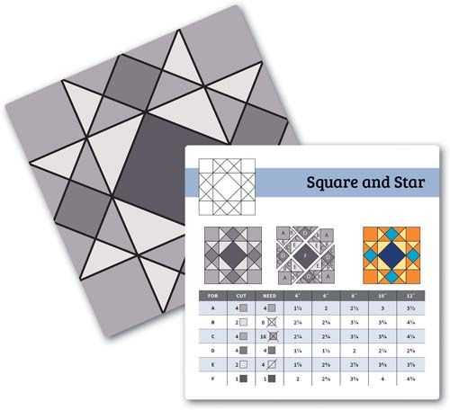 Featuring 50, 100 x 100mm cards, there are endless possibilities to create your unique quilt! Each card features a unique quilt block on the front and cutting information on the back. Combine different cards to create your own two-block or sampler quilt.