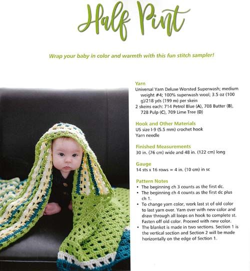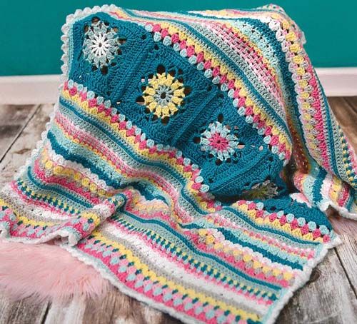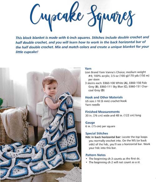 Crochet them in the colour palettes shown, or use colours to match the nursery or your own favourite combinations. You'll delight in seeing the stitches fly off your hook as your blanket progresses, and baby and new mom will love snuggle time in the soft, beautiful afghan you made!