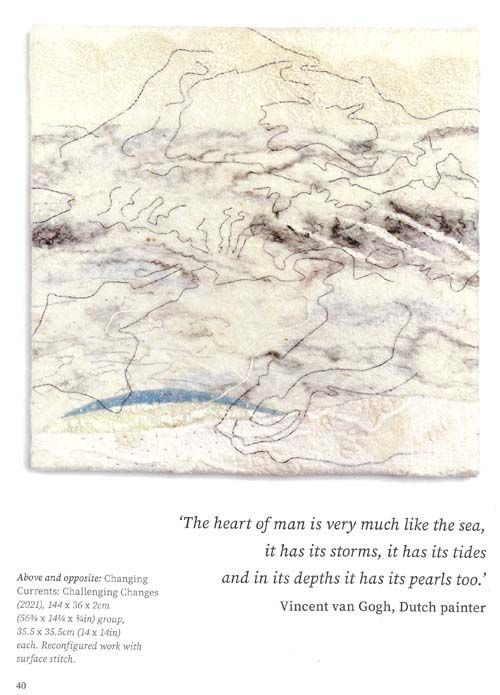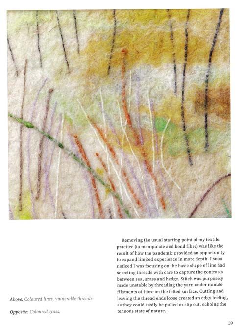 - How to capture the nuances of nature through creating exciting felt surfaces – lines of sea, frosted puddles, hedge and grass – and how to translate them into subtleties of texture and stitch