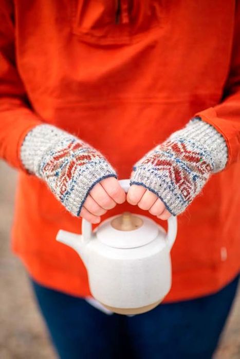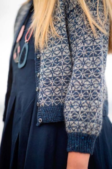 Influenced by northern colourwork traditions from Norway and Sweden to Iceland and Shetland, the designs include graphic hats and mitts and cosy yoke pullovers and cardigans. In Starnkeeker, the familiar monochrome motifs of Selbu accessories are adapted for a colour-blocked Argyle vest, while the Tìoraidh cardigan reveals how a small “filler” motif might become a two-tone pattern’s main attraction.