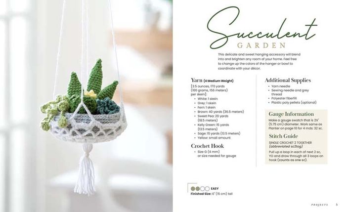 Whether you’re looking for practical items like cactus coasters, dish scrubbers, pencil holders or a table runner, or you want to create decorative items like potted plants, garlands, wreaths, dreamcatchers and wall art, this book has something for everyone. You can also make personal accessories like floral hair clips, headbands and different purse designs that you can carry with pride.