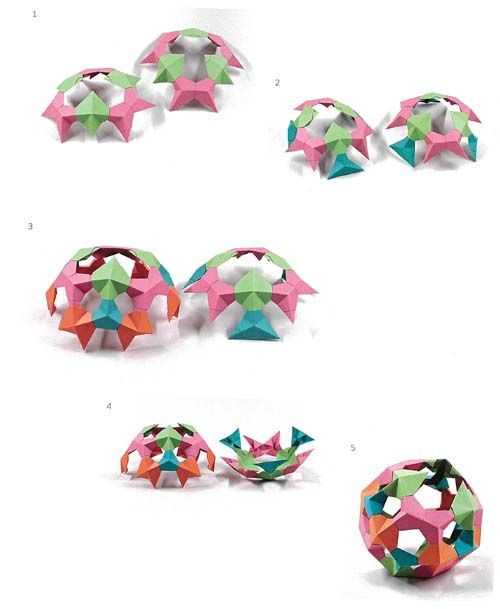 The models all have the same edge length, allowing every one of them to fit together edge to edge and corner to corner and making folding and combining the models easy. Once you've mastered the models and learned to assemble the forms, use these techniques to create your own unique and colourful paper sculptures and ornamental designs.