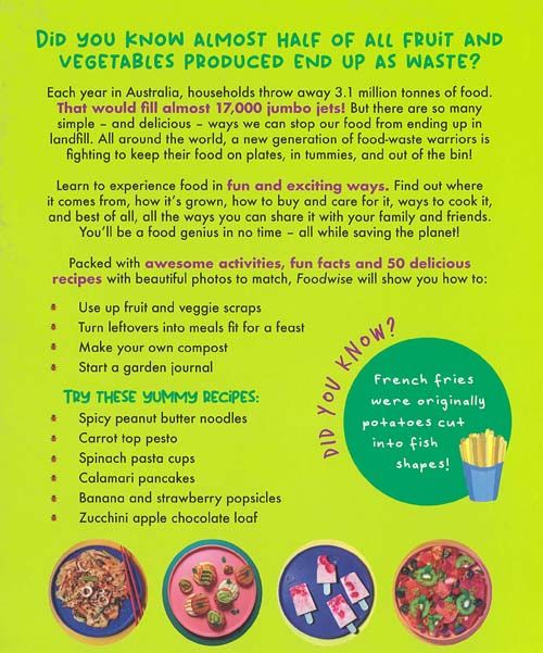 Learn to experience food in fun and exciting ways. Find out where it comes from, how it’s grown, how to buy and care for it, ways to cook it, and best of all, all the ways you can share it with your family and friends. You’ll be a food genius in no time – all while saving the planet! Packed with awesome activities, fun facts and 50 delicious recipes with beautiful photos to match, Foodwise will show you how to: