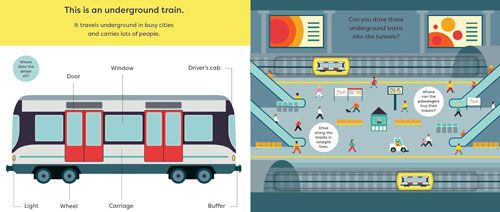 Discover different types of trains in this interactive board book with easy-to-use moving parts. Learn vehicle vocabulary with simple first words, clear diagrams and helpful text prompts to encourage discussion. Then trace the transport around different tracks with a moving counter on every spread and the cover.