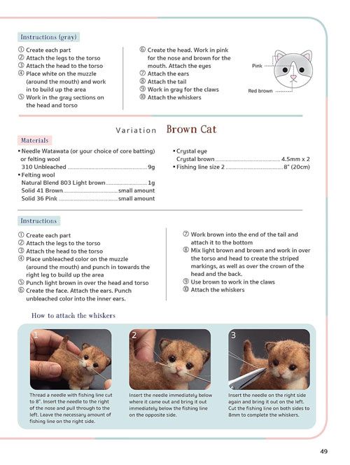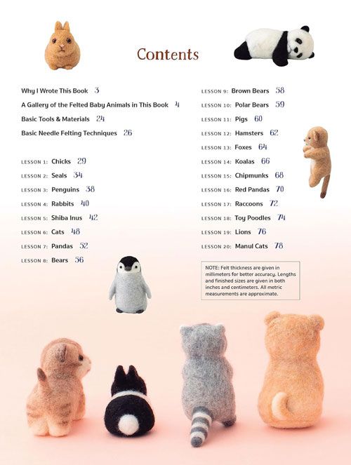 The projects are presented according to the level of experience required to make them, with detailed step-by-step instructions for each. Actual-size diagrams for the key body parts make it easy to reproduce their sizes and shapes accurately. Active (and sleeping) poses make the figures extremely lifelike and give you a variety of options so you can even assemble a whole litter of cuties!