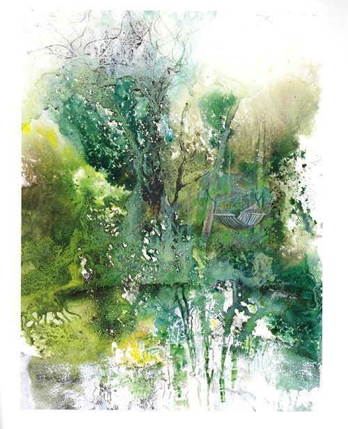 Drawing inspiration from poetry, birdsong and folklore and incorporating words, text and photo transfer, the book draws you further into the forest with practical advice on working outside, experimenting with mixing colours (especially greens), playing with water effects, using salt and granulation, mark-making and spattering with found objects such as leaves and twigs, creating texture with gesso and collage, and working with oak gall ink and charcoal.