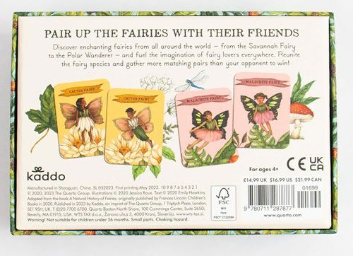 - The sturdy gift box contains 40 cards, each measuring 8.8 x 6.6 cm and a 28-page booklet illustrated booklet covering game rules, fairy facts and tips for finding them yourself