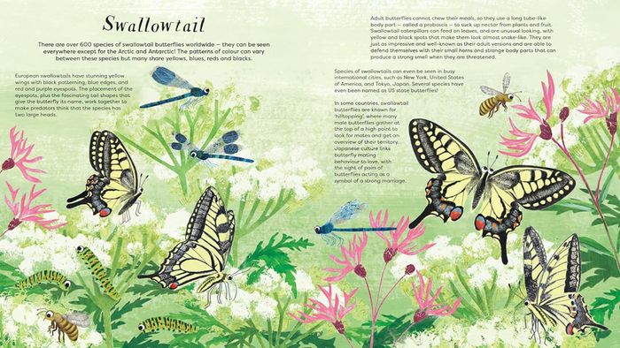 Then turn to the back of the book to pore over 22 richly illustrated pages with dazzling full colour nature scenes alongside a gently informative text to treasure. Covering everything from habitats and diets to myths and legends, this is a stylish, joyful introduction to a variety of European butterflies.