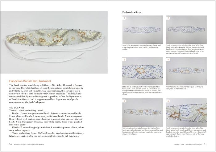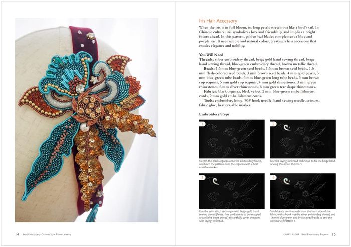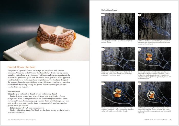 - Learn to embroider nearly 20 different kinds of flowers using a combination of bead embroidery techniques through illustrated tutorials, and make jewellery that incorporates Chinese aesthetics, including earrings, bracelets, necklaces, brooches, hairbands and clutch bags, bringing the art of bead embroidery into your daily life