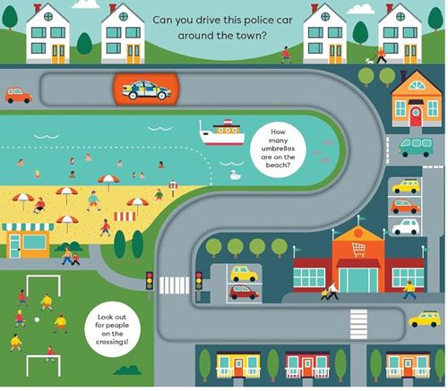 Discover different emergency vehicles and learn vehicle vocabulary with simple first words, clear diagrams and helpful text prompts to encourage discussion. Then trace the transport around different tracks with a moving counter on every spread and the cover.