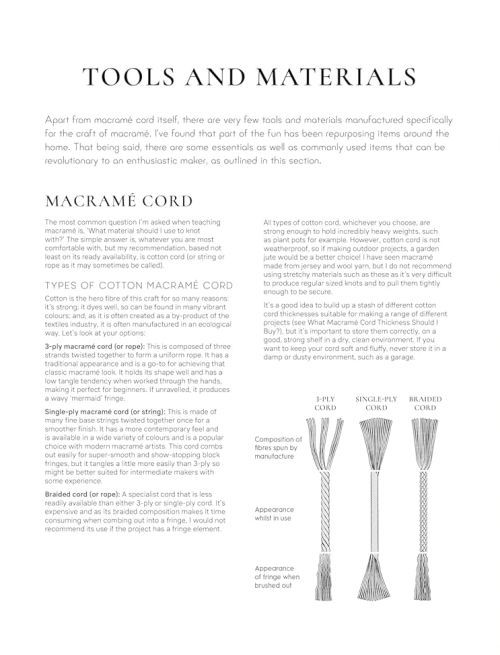 The book explains all the basics including information about all the main tools and materials. The author shares her practical tips and tricks for getting started, as well as really useful advice such as how to manage lengths of rope as you are working on projects to stop them getting tangled.