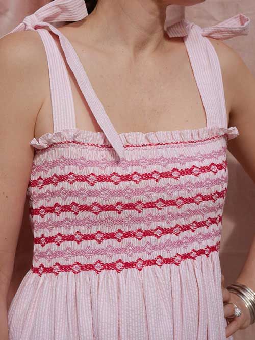 This image-led, modern guide is suited to both smocking learners and experts as well as lovers of colours and patterns. Offering both instruction and inspiration this fashion-forward guide walks you through the basics of English smocking and offers a kaleidoscope of ideas for how to bring these hand stitches to life by combining thread colours, stitch motifs and dramatic smocking placement to fabulous effect.