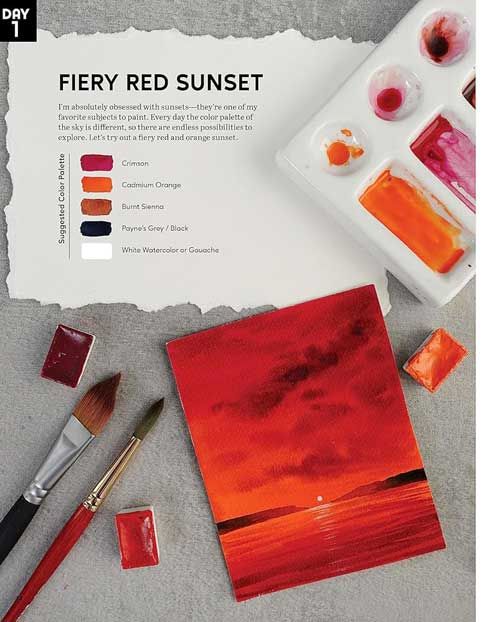 Take a 30-day art challenge and build watercolor skills while creating 30 gorgeous skies for every time of day and light effect.