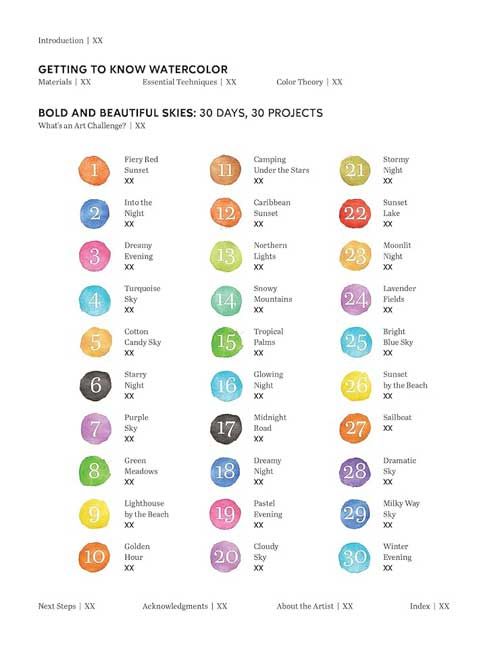 - Explore what an art challenge can help you achieve as an artist, then follow the 30 step-by-step tutorials to create a range of stunning, colourful skies and light effects, from a bright blue morning to a fiery red sunset, from a starry night to the aurora borealis