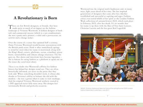 Packed with photographs and information covering her extraordinary life, you'll discover how provocation and anti-establishment slogans became her calling cards and how her brand developed its characteristic motifs. Find out about the Vivienne Westwood catwalk moments that have gone down in history, how THAT wedding dress came to feature in the Sex and the City movie and how a pearl necklace went viral on TikTok.