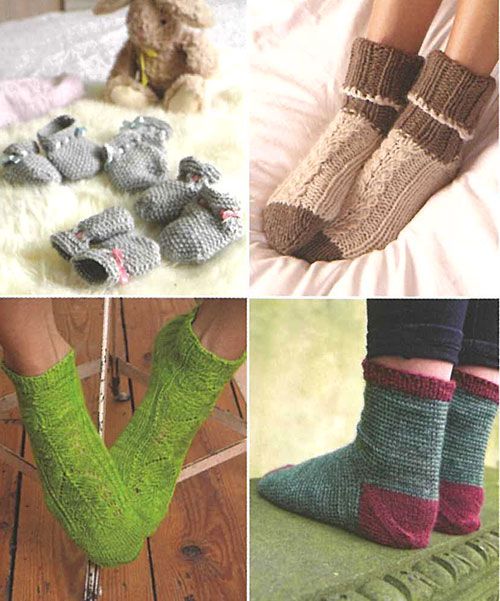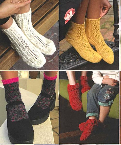 Projects include: baby booties, twisted rub socks, lace socks, Jump! Legwarmers, Major Tom socks.