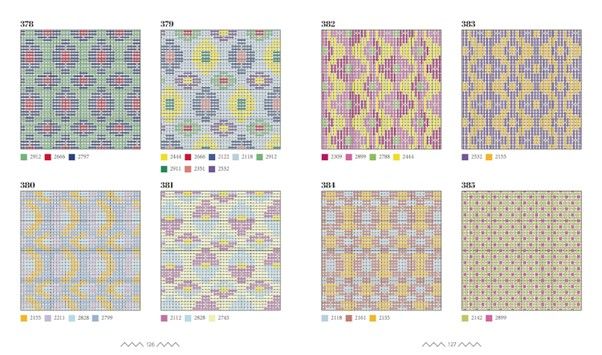 The main stitch used for these patterns is the Bargello stitch, a stitch that actually includes several variations such as flame stitch and Florentine stitch. This group of stitches use regular, straight stitches that repeat with a regular offset. Further patterns also use other stitches adapted to the canvas, which will allow you to diversify your techniques and obtain more complex designs. Throughout the pages, you will discover simple patterns that can be repeated ad infinitum, allowing you to cover any size canvas.
