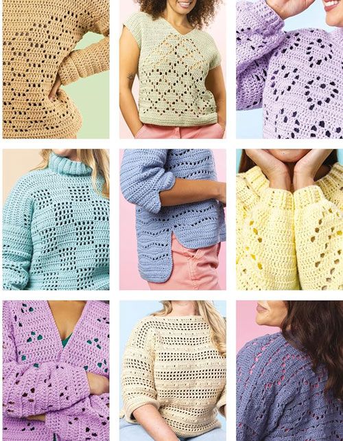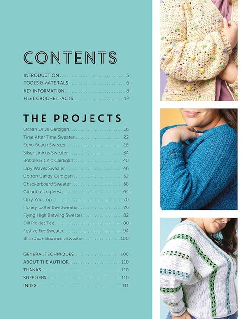 Learn to filet crochet with this collection of 17 crochet patterns for filet crochet garments including sweaters, tanks, tee shirts and cardigans. Filet crochet only uses two stitches in a grid formation – chain stitch and double crochet. This stitch combination creates a mesh-like fabric which is great for showing different motifs and patterns.
