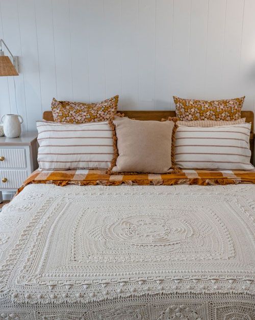 Each design starts with the sunrise centre and walks you round by round to create patterns inspired the shapes, the sounds, and the sense of ease of walking along the Australian coastline. You can either take a short stroll (baby blanket), walk a little further (lap blanket), or go the long way round (bed blanket).