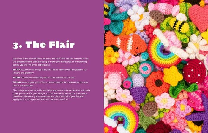 The patterns look complicated, but crochet with ease – the secret is in the embellishments. Patterns for crocheted flowers, bees, stars, clouds, an entire coral reef of fish and sea creatures, and a field of mushrooms, veggies and exotic greenery, are included, enabling readers to hook wonderful hats and bags with lots of flair (or just a little!). The author's approach inspires crocheters to innovate and playfully reinvent by using her easy-to-follow instructions as a springboard.