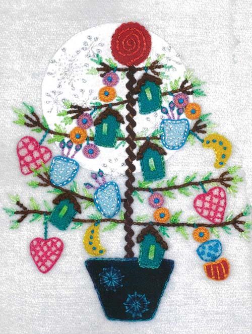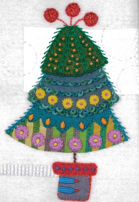 Learn basic background layering techniques for cotton fabrics, plus sneaky tricks to make cotton appliqué a walk in the park! You'll add some extra love to your Tinsel quilt with textural background stitching, and you'll learn to enhance elements with masterfully chosen embroidery stitches.