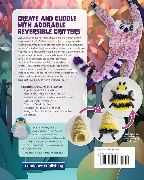Cute, clever and fun for all, make super sweet amigurumi crochet projects that are two creations in one, Crocheting Reversible Amigurumi Projects is a delightful book of inside-out animal crochet patterns created with traditional and faux fur yarns.