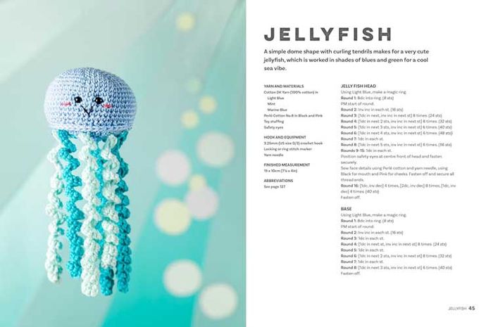 In chapter 1, Foodie Fun, discover how to crochet a trio of peas in a pod, treats such as a cupcake and an ice cream, and even some mini sushi. Chapter 2, Underwater Adventures, is packed with colourful creatures such as a jellyfish, a seahorse and a mermaid. In chapter 3, Out in the Garden, there are adorable animals including a friendly fox and a sweet bunny as well an enchanting toadstool. Chapter 4, Daily Life, features charming makes such as crayons in rainbow colours, a little coffee cup and a happy houseplant. Finally, chapter 5, Supersize, includes a range of larger-than-life designs, all made with super-soft chunky chenille yarn.