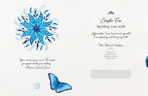The seven chapters all speak to the seven chakras, and the book takes the reader on a journey through the self as they explore the various ways they can generate feelings of self-love through art and self-care. Each chapter explores how that creative energy of that chakra can be explored in the physical world, with drawing practices, watercolour practices, and gentle crafts. Throughout, the author’s unique wisdom and perspective guide the reader on a journey of calming creative discovery towards a sense of peace, while learning new skills or brushing up on dormant ones.