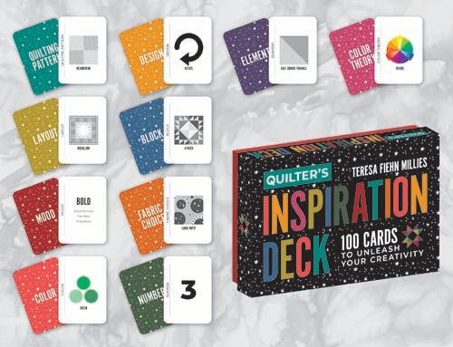 Set aside your quilt patterns and find freedom in the creative process with the Quilter’s Inspiration Deck. These 100 cards, divided into ten categories, allow you to explore your creativity by randomly selecting design elements. Draw from each category or only a few, and let the cards become your muses for your new project, big or small.