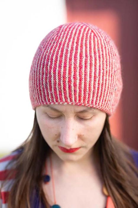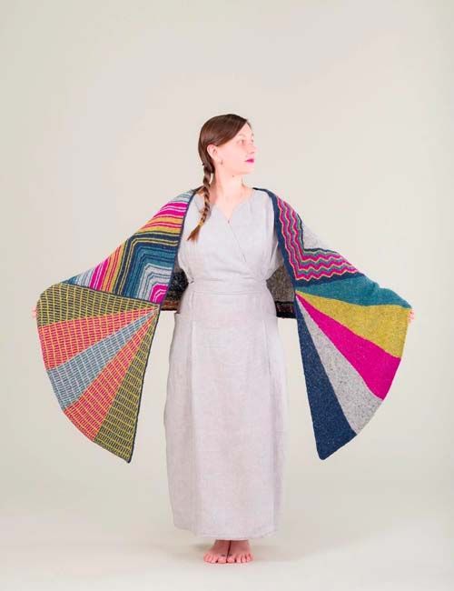 Kate Davies’ collection speaks to the detective author’s inventive spirit: a single, unbroken strand of yarn transforms itself into a three-dimensional slipper; hats and pullovers are knitted from side to side, while a triangular shawl up-ends itself to eventually become a cardigan. The techniques are all contemporary, but there’s a nod to classic twentieth-century knitting style as well: narrow garter-stitch stripes meet modern short row shaping, while slipped stitches and Art Deco chevrons are incorporated into light knits that will work in many wardrobes.