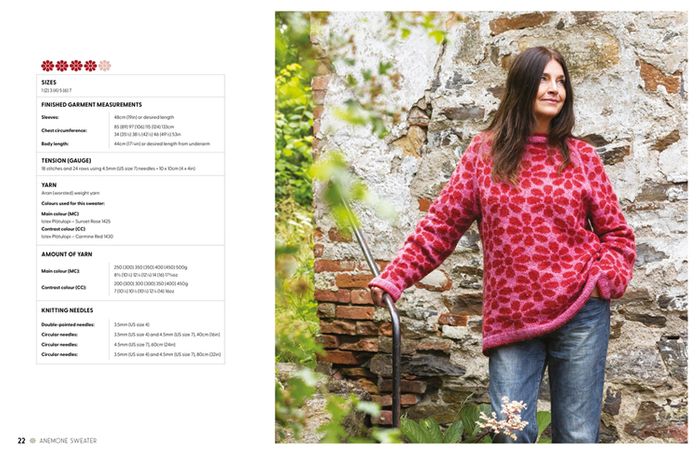 The sweaters are all knitted top down and in the round so they can be easily adapted to change the length of the body and arms and there is no seaming to do later. They are designed to have a loose fit which means they work as unisex sweaters and can be worn by the whole family. The 12 designs have an alternative colourway so you can see how it might look in a different palette and experiment with your own colour choices.