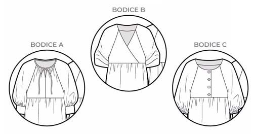 - All sleeve options can be added to bodices A, B or C