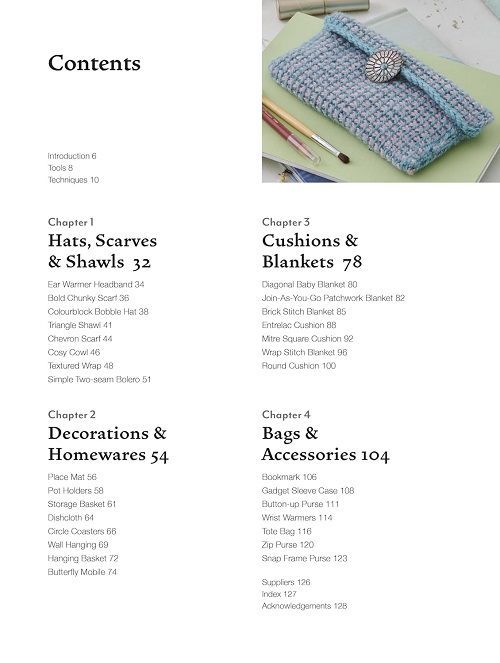Discover how to crochet projects for the home such as spiral coasters and a hanging basket, as well as cosy blankets and cushions. There are also patterns for unique shawls, scarves and accessories, from a simple ear warmer and a stripy cowl to a chunky tote bag.