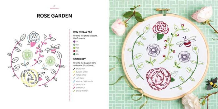- Step-by-step stitch guides, full-colour photos and thread keys