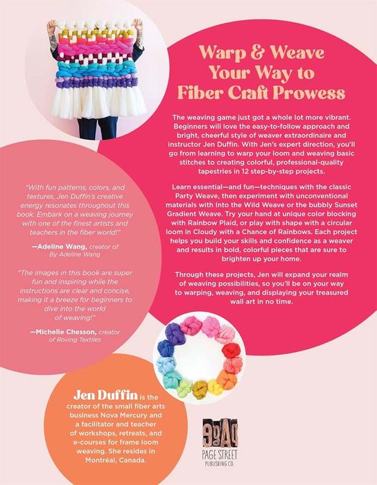 The weaving game just got a whole lot more vibrant. Beginners will love the easy-to-follow approach and bright, cheerful style of weaver extraordinaire and instructor Jen Duffin. With Jen’s expert direction, you’ll go from learning to warp your loom and weaving basic stitches to creating colourful, professional-quality tapestries in 12 step-by-step projects.