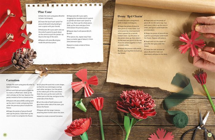 - Vibrant floral designs: From the classic red velvet rose and blooming peonies to chocolate cosmos and pretty pine cones, press-out the petals and pieces to create a charming festive bouquet.